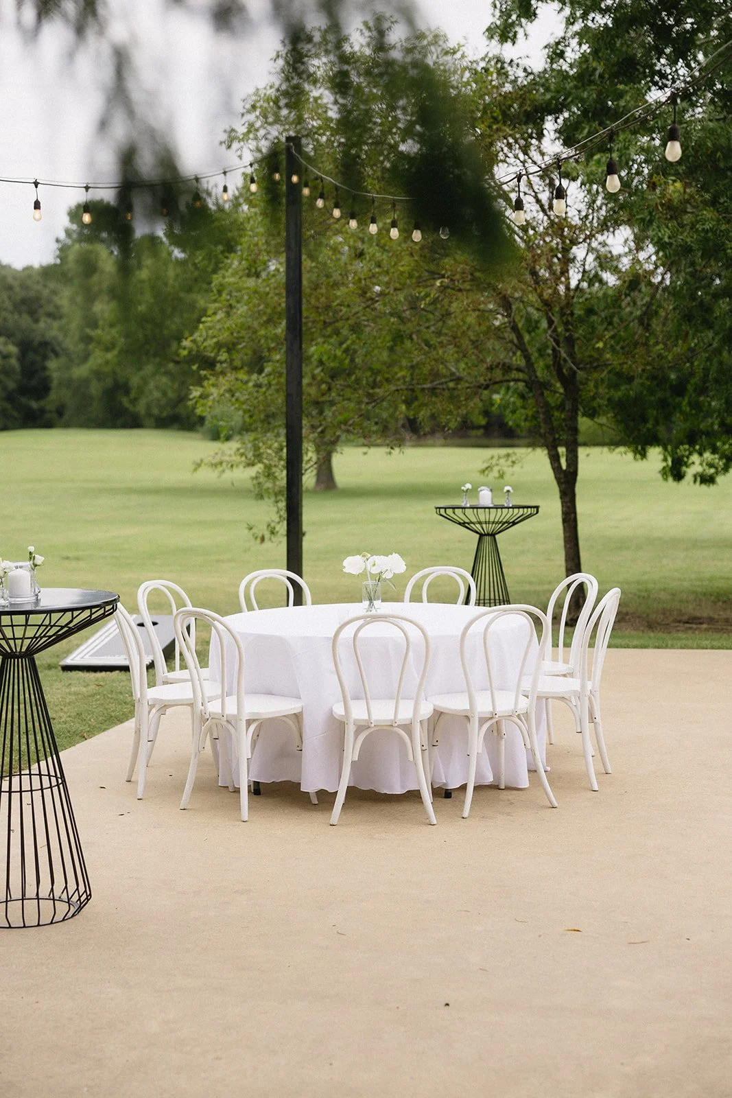 The back patio is without a doubt, one of our favorite spaces at The Emerson! Cocktail tables are a great way to frame in the patio for both cocktail hour + reception. For the cooler months, we do have patio heaters available to rent!